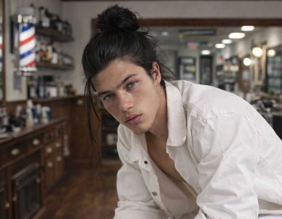 Straight Long Hair Man Bun