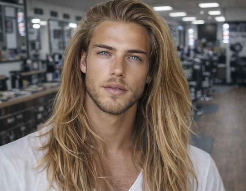 When visiting your barber for straight long hair, clearly mention the desired length and whether you want to keep it shoulder-length, chest-length, or longer. Ask for soft or textured layers to add movement and natural flow while keeping the straight texture clean and controlled. Specify if you want a middle part, side part, or no part, and explain how you usually style your hair daily.
