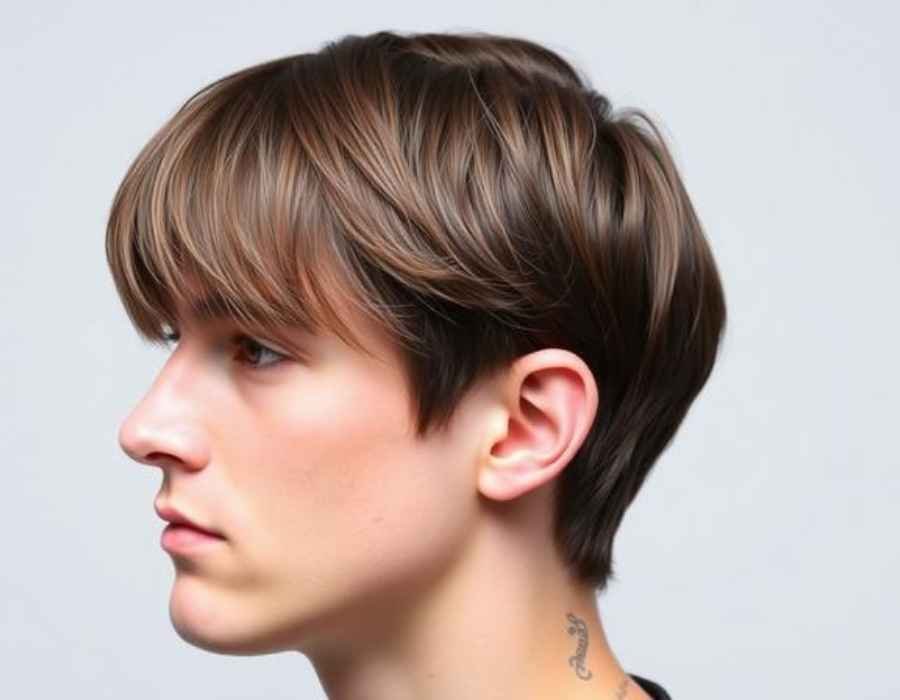 This haircut frames the forehead neatly and gives a fresh, youthful feel. It works well for straight or wavy hair and suits anyone who wants a low-effort style with a stylish edge.