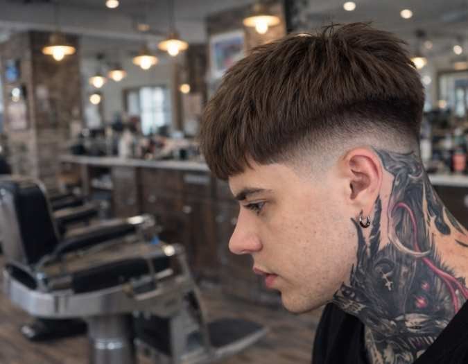 The caesar cut with a skin fade focuses first on short fringe detail and clean lines, then builds a smooth fade that blends sharp precision with a youthful edge, which is why it’s a favorite among trend-conscious teens. From hands-on barber work, this style stands out because the paired skin fade creates clean contrast, while textured layers on the top add natural movement without losing control.